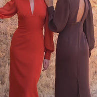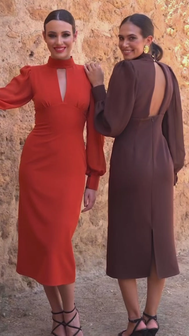 El Vestido Saire es una propuesta elegante y sofisticada que combina modernidad con sutileza. Su diseño midi en tono caldera realza la silueta con un patrón entallado que aporta estilo y feminidad.